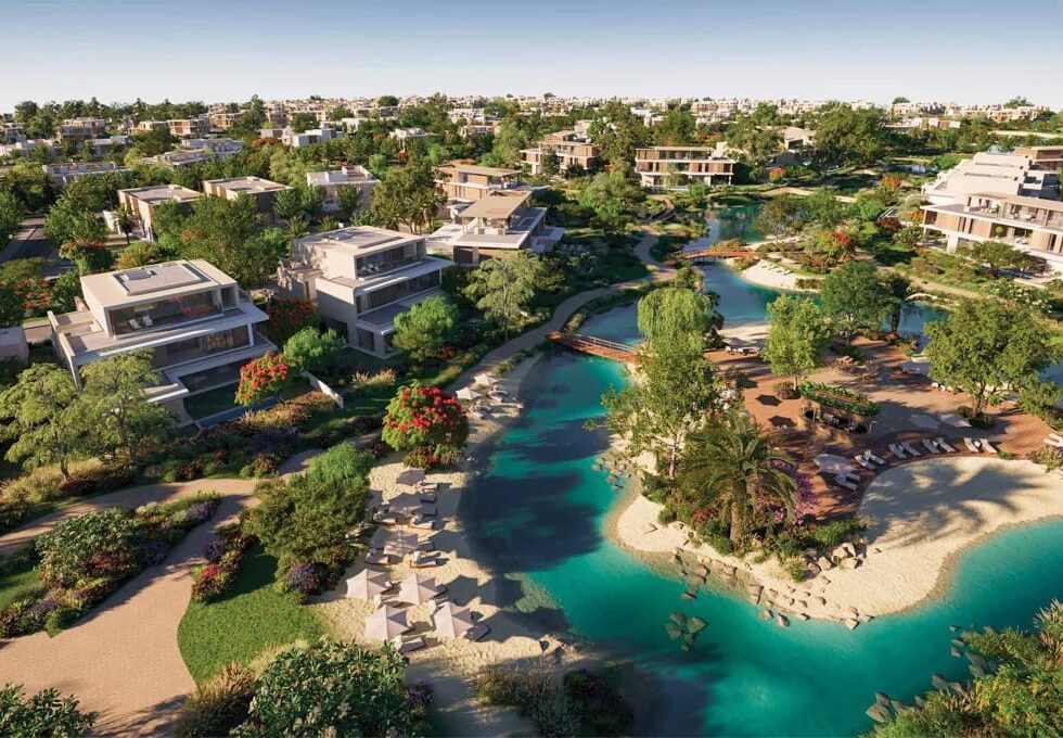 A high-end waterfront community by Nakheel featuring 4–7 bedroom townhouses and villas, with lagoons, wave pools, private beaches, water‑centric amenities, and a central aqua dome.