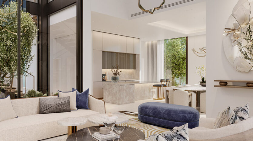 Amid scenic surroundings, the distinguished villas and townhouses achieve a modern and refined look while sunlight generously suffuses the living areas, forging a seamless connection with nature.