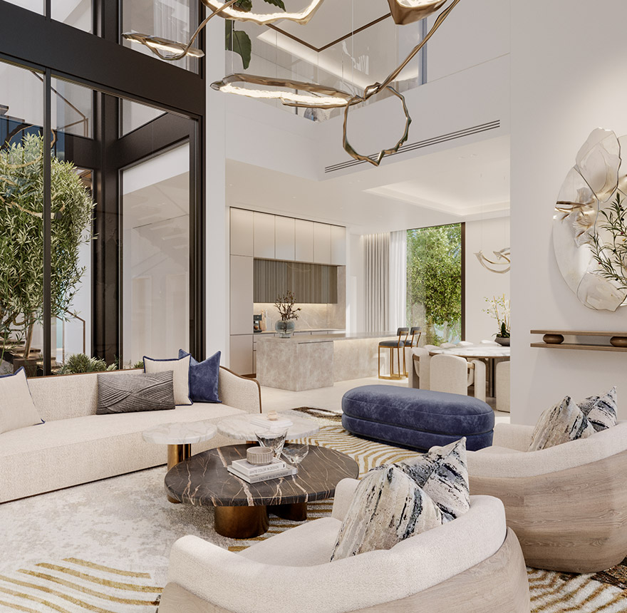 Amid scenic surroundings, the distinguished villas and townhouses achieve a modern and refined look while sunlight generously suffuses the living areas, forging a seamless connection with nature.